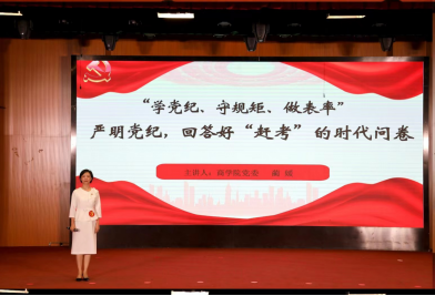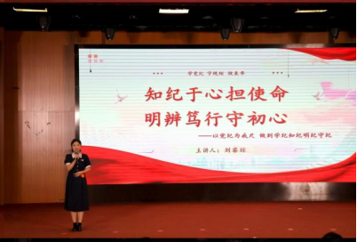 教工组比赛中,蔺媛以《严明党纪,回答好“赶考”的时代问卷》为题,以声情并茂的讲授,系统阐述了党的百年“赶考”历程中,中国共产党人始终不变的过硬作风和守纪为民的初心使命。学生组比赛中,刘睿琼以《知纪于心担使命,明辨笃行守初心》为题,从中国共产党在不同时期的纪律规定,倡导新时代青年要始终学思践悟,自觉做到学纪、知纪、明纪、守纪。