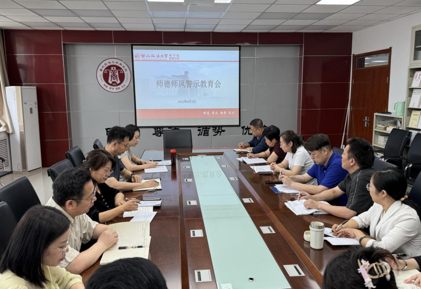 会议学习了学校师德师风建设文件制度汇编,通报了教育系统违纪违法典型案例和师德师风反面典型案例,围绕相关案例开展剖析。会议要求,要深刻理解习近平总书记关于师德师风第一标准的重要论述,提升道德修养,增强知识储备,乐教爱生,潜心育人。要结合深入贯彻中央八项规定精神学习教育,强化警示教育,以案为鉴,严守底线。要持续深入推进全面从严治党,从完善制度入手,以落实落细为要,把严的标准贯穿到学院教学科研、学科建设、入党评优、队伍建设等各方面工作,不断巩固发展风清气正的育人氛围。