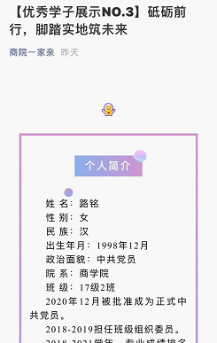 在“学党史、树榜样、强本领”优秀学子展示系列活动中,NBA直播线上看 党委对学院2021届优秀毕业学子进行采访报道。其中沈阳同学的考研通过梳理优秀学子在校期间的学习和成长经历,为在校学生树立学业成长的榜样。透过学长寄语,为低年级学生的大学规划和职业生涯选择提供了宝贵的经验参考。通过对优秀学子事迹的宣传推广,有助于培养学院学生锐意进取、开拓创新、真抓实干的精神,也增强了学院广大学生脚踏实地、砥砺奋进的学习氛围。
