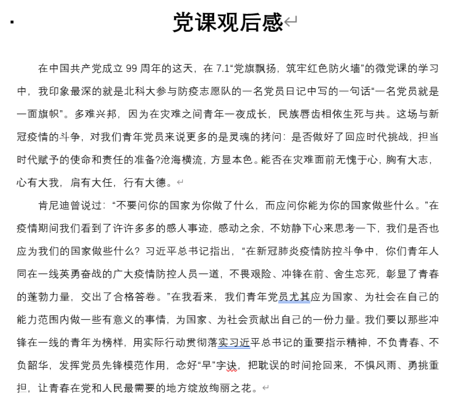 7月1日上午,由教育部思想政治工作司指导的“党旗飘扬·筑牢红色防火墙”高校党组织战“疫”示范微党课七一专题开讲了。专题节目分为《人民至上——中国共产党永恒的价值追求》、《心有所信,方能致远》、《在爱国的集体、做乐观的英雄》及《用北科担当讲好中国故事》四个部分,讲述了中国共产党筚路蓝缕,艰苦奋斗的历程和始终为人民谋幸福的价值追求。