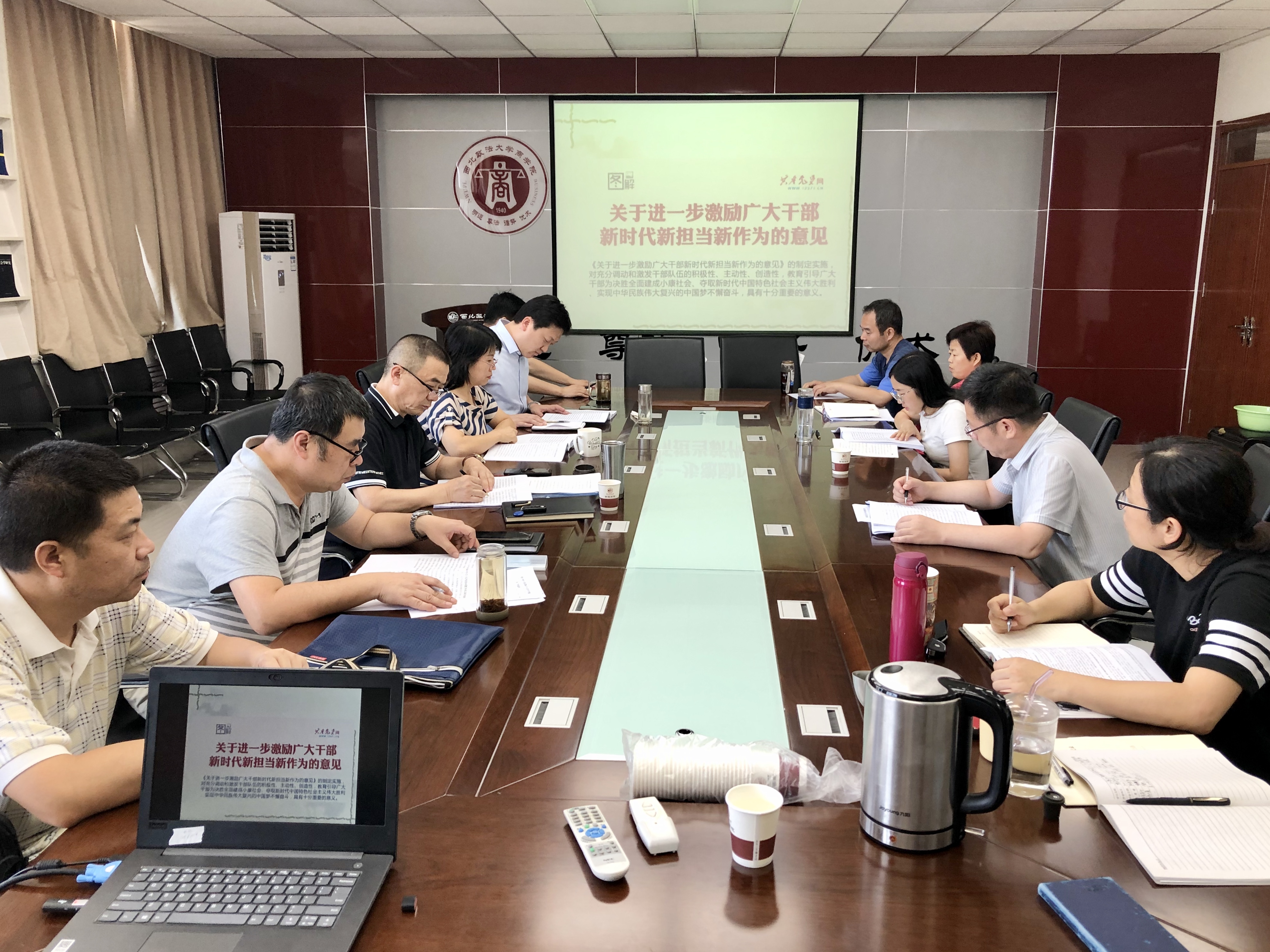 副院长杨柳青领学习总书记关于加强党的作风建设的重要论述相关文件。院长李晓宁,院党委副书记、副院长刘智伟结合《关于进一步激励广大干部新时代新担当新作为的意见》《关于解决形式主义突出问题为基层减负的通知》《关于持续解决困扰基层的形式主义问题为决胜全面建成小康社会提供坚强作风保证的通知》等文件,分别作主题发言。