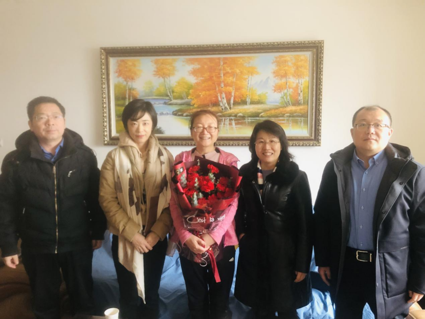 在刚刚退休的谢斌教授家中,学院领导感谢她多年来为学院事业发展做出的贡献,并希望谢斌教授一如既往关注和支持学院工作。