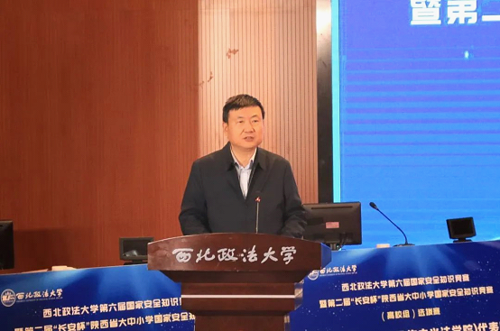 3月29日,第六届国家安全知识竞赛暨第二届“长安杯”陕西省大中小学国家安全知识竞赛(高校组)选拔赛决赛在我校长安校区满天星学术报告厅举行。陕西省国家安全厅、陕西师范大学国家安全学院等领导嘉宾、我校党委副书记郭武军出席活动。学校党政办公室、党委宣传部、党委学工部、校团委、保卫处等相关部门负责人,各学院学生工作负责人、辅导员及学生代表400余人参加活动。