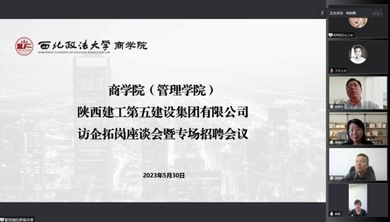 为深入拓展就业岗位资源,精准发掘校企合作契合点,5月30日下午NBA直播线上看 与陕西建工第五建设集团有限公司线上召开访企拓岗座谈会暨专场招聘会。陕建五建集团人力资源部(党委组织部)部长黄锋辉、人力资源部副部长郑惠、人力资源部招聘主管吴斌,NBA直播线上看 领导、部分毕业生参加会议,会议由蔺媛副书记主持。
