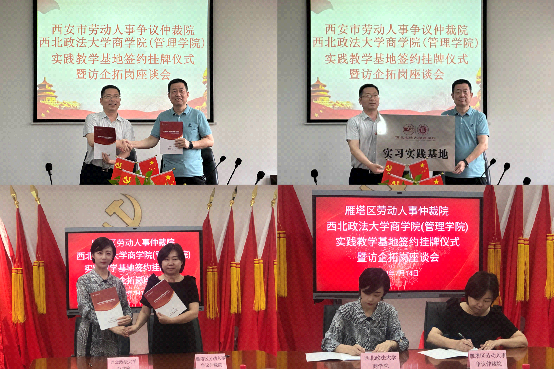 为深入拓展就业实践岗位资源,精准发掘校企合作契合点,7月14日NBA直播线上看 到访西安市劳动人事仲裁院与雁塔区劳动人事争议仲裁院,进行实践基地签约挂牌仪式与访企拓岗座谈会。西安市劳动人事仲裁院院长方勇、雁塔区劳动人事争议仲裁院院长田辉、NBA直播线上看 副院长杨柳青、党委副书记蔺媛、教师代表及实习生代表参会。