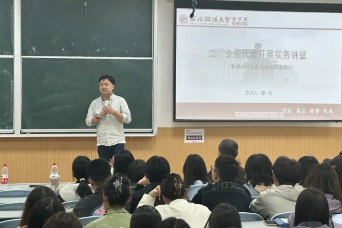 廖琰老师结合多年行业经历,介绍了电子商务和互联网发展的当前态势。他分析了在现代互联网环境下,新媒体行业如何通过不同的形式和工具向公众传达情感与体验的核心价值。通过互动式讨论,同学们积极参与思考并回答提出的问题,廖老师热情地分享了自身从业经验,解答了同学们的疑问,帮助他们为将来从事新媒体行业做好职业规划,整个讲座氛围轻松活跃。