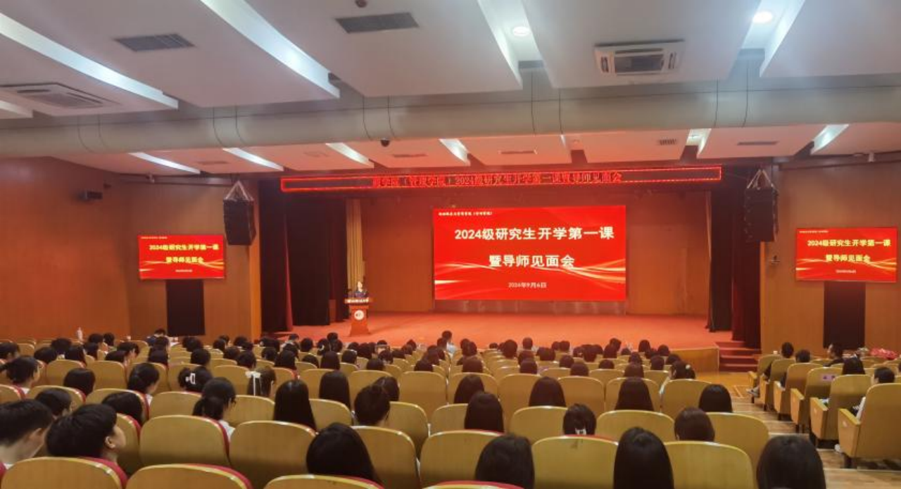在长安校区图书馆满天星学术报告厅举行了2024级研究生开学第一课暨导师见面会。校党委委员、副校长、公共管理一级学科带头人张荣刚教授、学院党政领导班子成员、全体硕士生导师及2024级所有研究生参加,会议由研究生辅导员李章星老师主持。