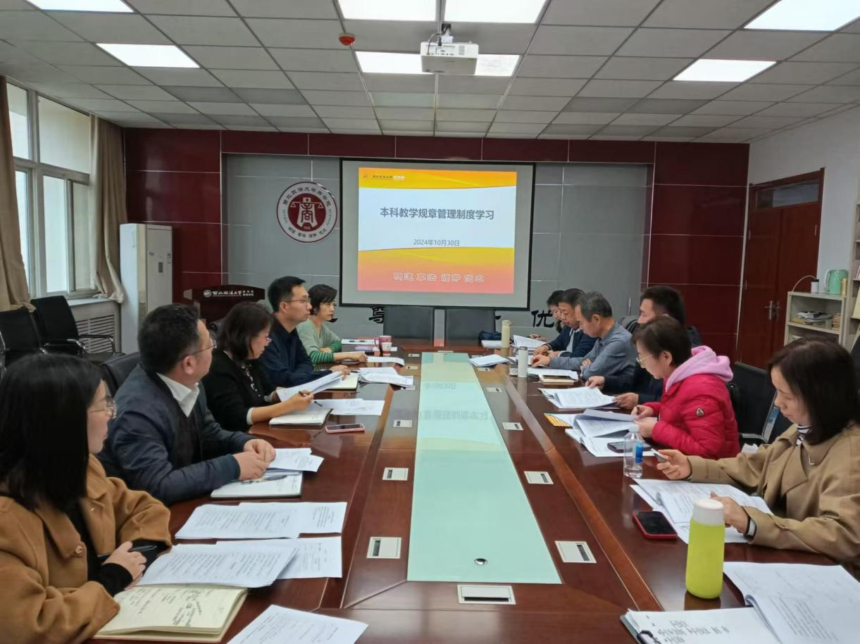 于10月29日下午在学院资料室召开本科教学规章管理制度专题学习会议。学院领导班子成员,教师各党支部书记及系部主任参加会议,会议由教学副院长冯颖主持。