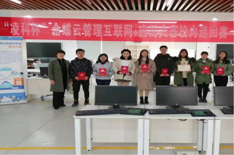 “金蝶云管理创新杯”互联网+管理应用大赛是由金蝶软件(中国)有限公司发起,联合教育部主管协会——高校毕业生就业协会举办的一项全国性高等院校学生竞赛活动。大赛面向全国高校在校学生,通过模拟企业管理信息化经营等形式,培养学生沟通协作能力,全面锻炼和提升学生的实践能力。本次大赛共有来自我校不同院系的102名学生、共计34支队伍参加,根据比赛结果,共有三支队伍9名学生脱颖而出,晋级区域赛。