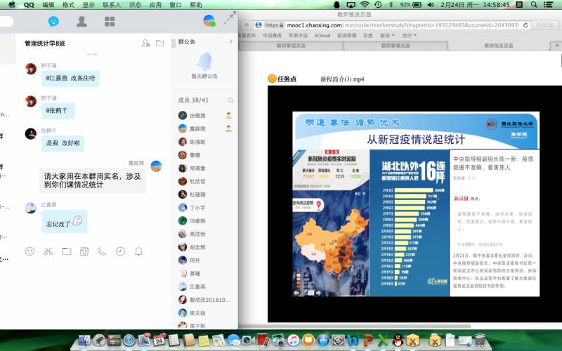 全体教师在疫情防控过程中恪守育人初心、牢记本分责任,认真贯彻落实“延迟返校、按时开课、调整教法、保证质量”的要求,通过雨课堂、超星学习通、微信群、QQ群、腾讯会议等方式完善线上教学,有条不紊开展线上教学计划。