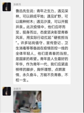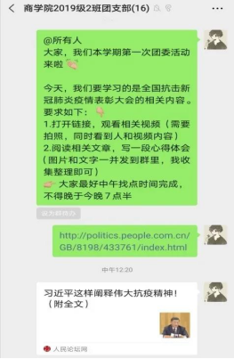 全国抗击新冠肺炎疫情表彰大会于9月8日上午10时在北京人民大会堂隆重举行。根据上级团委指示,在团支书的组织下,全体团员认真学习了习近平总书记发表的重要讲话,大家积极参与,并通过微信群展开讨论。