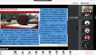 开营仪式上,院长李晓宁教授致辞并对同学们表示热烈欢迎,并介绍了管理学院的办学条件、办学特色以及发展状况。西北政法大学副校长、公共管理一级学科带头人张荣刚教授作为导师代表致辞,并祝愿同学们都能如愿成为西北政法大学硕士研究生。宋鸿雁研究员、胡信布教授、赵杭莉副教授、邢继军副教授、吴汉利博士等多位跟营导师分别代表导师组对本专业进行了介绍,以期营员们了解我们的专业。营员们也通过线上三分钟演讲进行了个人风采展示,营员们的精彩表现给老师们留下了非常深刻的印象。