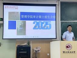 接着,各专业导师组组长和导师代表进行宣讲。他们分别针对行政管理、教育经济与管理、社会保障、土地资源管理、应急管理、数字治理、审计学、审计硕士(MAud)、公共管理硕士(MPA)等专业特点,向同学们介绍了专业发展、研究方向、师资力量、招生培养以及就业前景等方面情况。