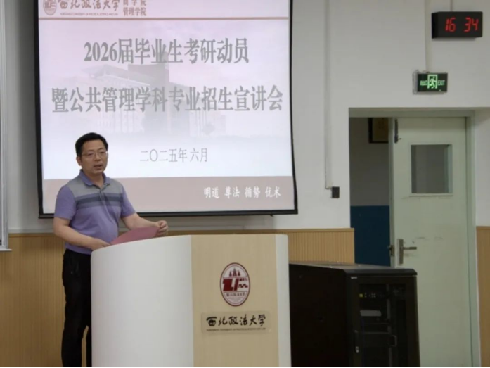 为帮助学生分析考研形势、准确定位目标,6月4日,NBA直播线上看 于天平楼AJ21召开2026届毕业生考研动员暨公共管理学科专业招生宣讲会。NBA直播线上看 党委书记赵参、NBA直播线上看 院长李晓宁以及各招生专业导师组组长及教师代表参会。本次会议由副院长杨柳青主持,2022级全体本科生参加。