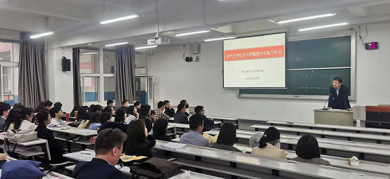 为了提高研究生学位论文的质量,加强论文写作的流程管理,实现高质量人才培养目标,5月27日下午NBA直播线上看 在雁塔校区召开研究生学位论文质量提升专题工作会。会议由学院院长李晓宁主持,公共管理一级学科带头人张荣刚副校长、部分研究生导师、学科秘书及80多名研究生参加会议。