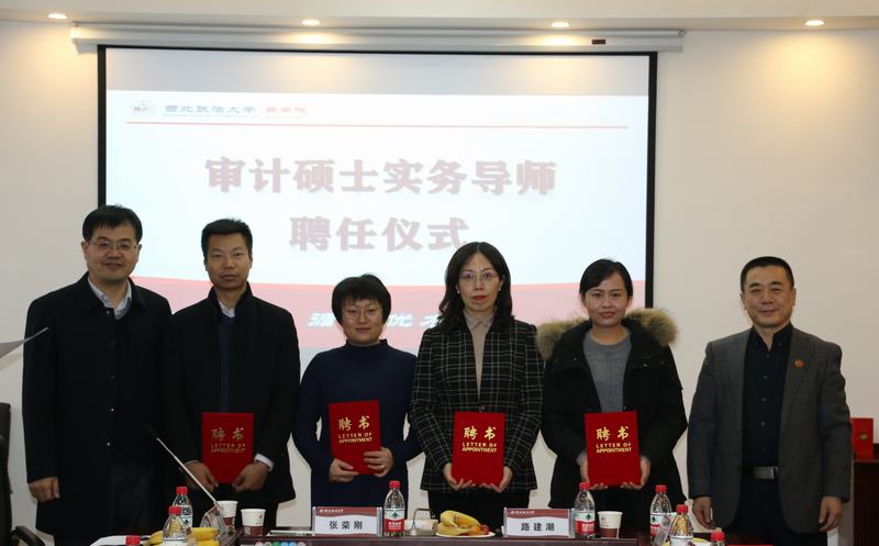 2019年12月29日下午两点半,NBA直播线上看 在雁塔校区举办了“审计专硕实务导师聘任仪式”。此次活动由NBA直播线上看 副院长徐京平主持,NBA直播线上看 院长张荣刚、党委书记路建潮及省审计厅,市(县)、区审计局和各集团、公司审计部门领导参加了此次会议。