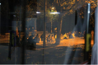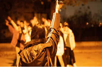 他们在夜色浓浓借路灯几盏起舞