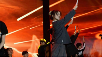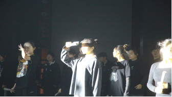 步履轻盈欢快的左右呼号四海的学子,手中书卷不放。他们说翻滚的时代浪潮中赤诚之子的灵魂终要抗争,终要向明日追寻一个美丽的答案——延安。载歌载舞而来,汇聚在舞台中间,红色的灯光铺满每个人的四肢,映照每个人的面庞。他们面对自己心中那个燃烧的原野。雀跃的心情主宰着青年的灵魂,舞者的内心,高高跃起时他们看见这一路的伙伴。他们汇聚又分开——汇聚在延安,四散到祖国各地种下革命的火种,掀起燎原的红色火光,使得大地面目为之一新!