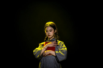 手捧《红星照耀中国》的女孩在聚光灯下一身黑白格子衫,缓缓翻开那一页,合上时目光炯炯尽是党旗所渲染天空的赤红。灯火葳蕤里,党旗破空猎猎作响,舞台的震颤是知识青年的奔跑的步伐,那些脚步曾经丈量黄土高原,丈量祖国的山河——正如他们所言的那样:“少年的中国没有学校,她的学校是大地和山川。”这些年轻革命者的目光一致望向远方,望向党旗所指的方向,他们相信清晨一定来临,黑暗一定消隐,他们的声音将会划破天空,舞台倾泻下来金色灯光正如我们在金泉中下注,下注会获得胜利的全新的中国。那嘹亮的信天游调子高亢,欢迎着来自四海的知识青年,工人,一切革命者的力量,就像在告诉人们:此处呐,信游无疆!