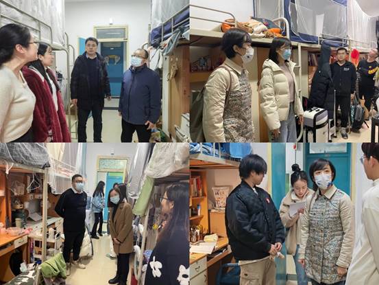 学院班子成员与各年级辅导员在走访中与学生亲切交谈,了解学生返校报到、用餐及住宿等情况,强调同学们要严格遵守学校返校健康管理相关规定,在整理好个人物品的同时,保持寝室卫生清洁,共同营造良好的学习生活环境。临近考试,希望同学们尽快调整学习生活习惯,提高学习热情,以饱满的精神状态投入到新学期学习和生活中。