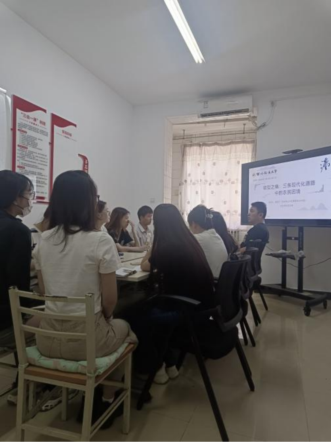2023年6月29日上午,NBA直播线上看 第42期“法商沙龙”在南校区7号学生公寓“一站式”社区工作站104室如期举行。政管学院2019级本科生魏岳平带来题为“转型之痛:三条现代化道路中的农民困境”的读书报告,李章星老师担任沙龙评议人,10余名本科生和研究生参与沙龙讨论。