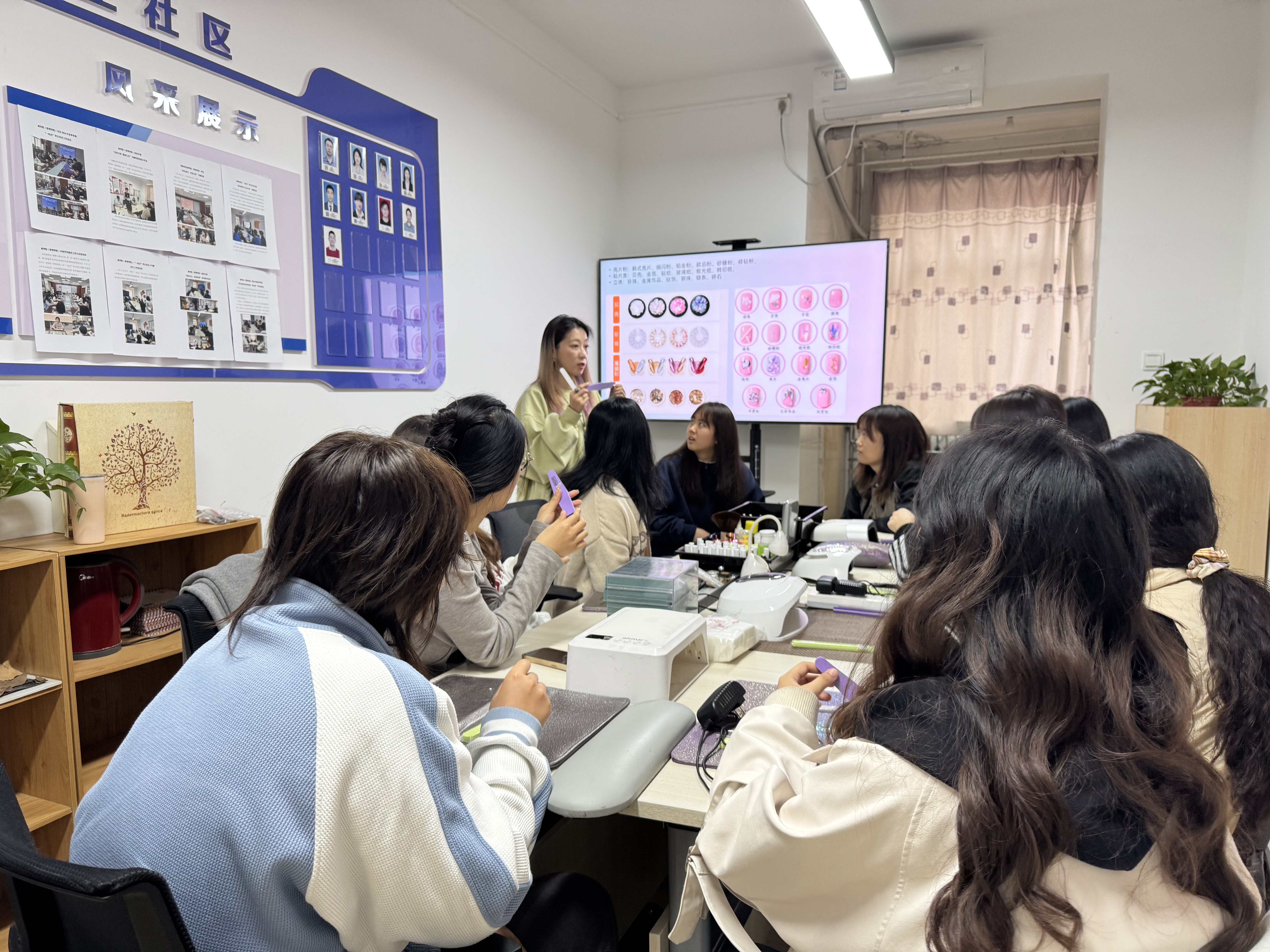 活动开始,周筱姸老师从指甲基础护理、图案设计到美甲技巧进行现场讲解,确保每位同学都能快速掌握美甲技能,享受创作的乐趣。