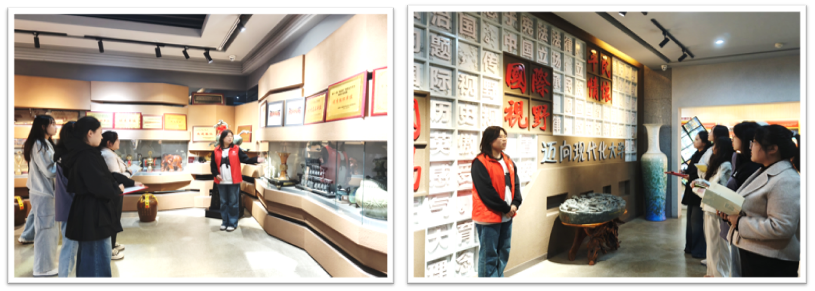 互动环节,王嘉怡同学积极提问,讲解员凭借深厚的专业知识逐一耐心解答。范雨洁同学结合我校校训与学校各个时期的办学历程,分享了校史文化对自己的深刻影响,呼吁大家传承并发扬学校的优良传统,为学校的发展贡献青春力量。