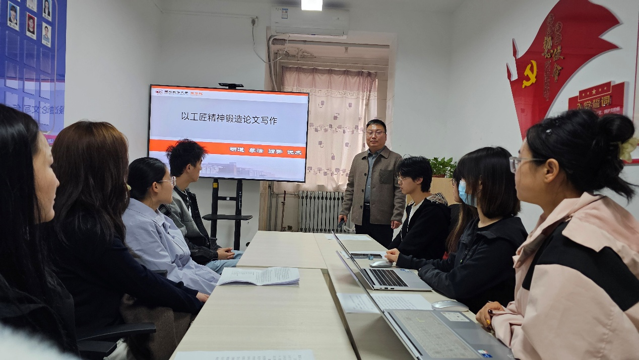 活动中,贺琦老师带领大家认真学习了习近平总书记在全国劳动模范和先进工作者表彰大会上的讲话精神,重点对工匠精神的科学内涵“执着专注、精益求精、一丝不苟、追求卓越”进行了解读,并结合实际,对论文的整体框架和写作规范进行了详细讲解。学习指出,新时代新征程上,要深入学习贯彻习近平总书记重要讲话精神,深刻认识和大力弘扬劳模精神、劳动精神、工匠精神,并将其融入到学习工作中,特别在论文写作方面,要对论文结构、语言表达等多方面要反复推敲和打磨,做到一丝不苟、追求卓越。