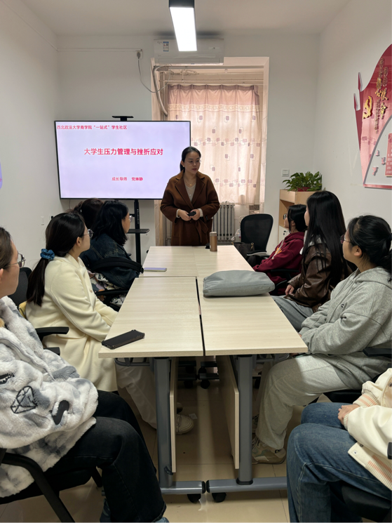 “一站式”学生社区开展“大学生压力管理与挫折应对”主题活动。本次活动由成长导师党琳静老师担任主讲。2024级学生代表和3楼宿舍楼学生代表参加。