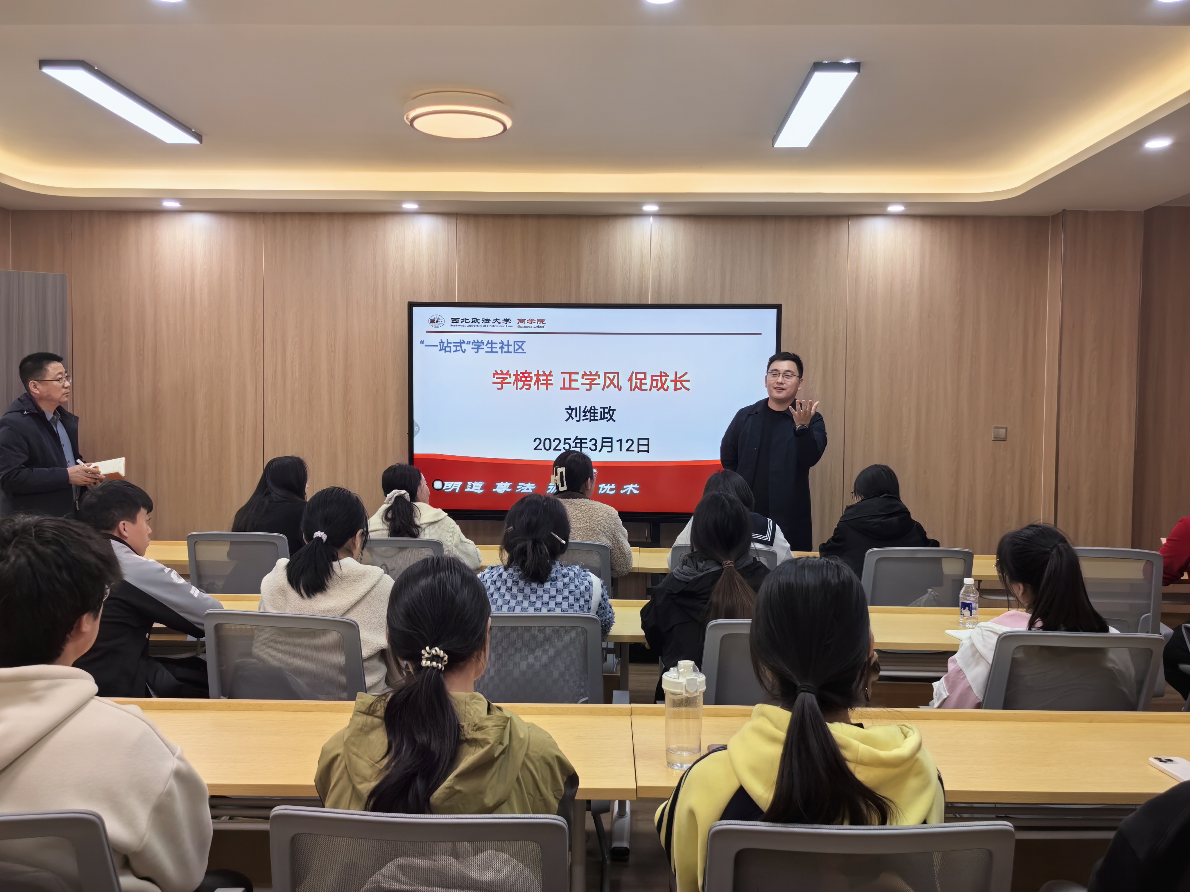 3月12日,NBA直播线上看 在我校枫桥“一站式”学生社区·学生成长发展中心开展“学榜样 正学风 促成长”活动,学院团委书记周迪、辅导员安万磊、兼职辅导员刘维政老师及本科生代表参加活动。