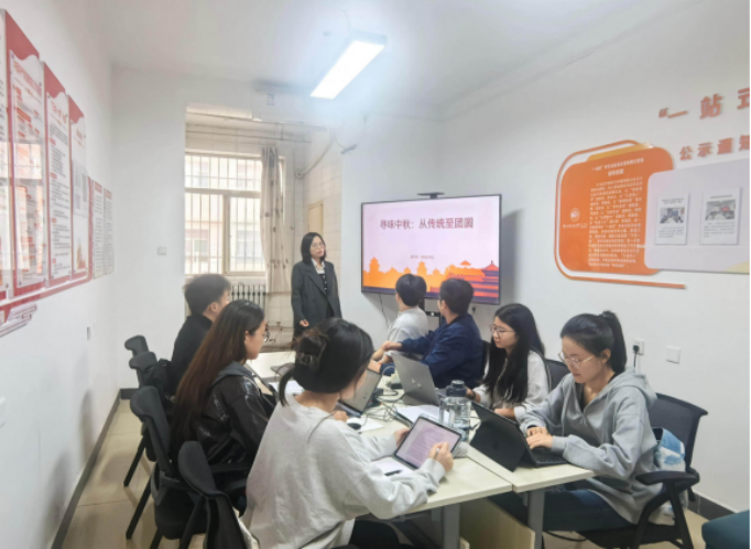 张涛涛老师以中秋文化为核心,从历史渊源、传统习俗、文化内涵和时代意义四个维度展开讲解。她围绕“中秋”一词的起源梳理节日发展历程,深入解读月饼、赏月、猜灯谜等传统习俗背后的文化意义,同时强调中秋节承载着中华儿女对家庭团圆、社会和谐、国家统一的美好向往,深刻体现了中华民族注重亲情、崇尚和谐的文化基因。交流环节,同学们踊跃发言,分享各自家乡的中秋习俗与团圆故事,大家纷纷表示,通过活动不仅学到了中秋文化知识,更真切体会到中华优秀传统文化的博大精深,未来将主动做传统文化的传承者与弘扬者。