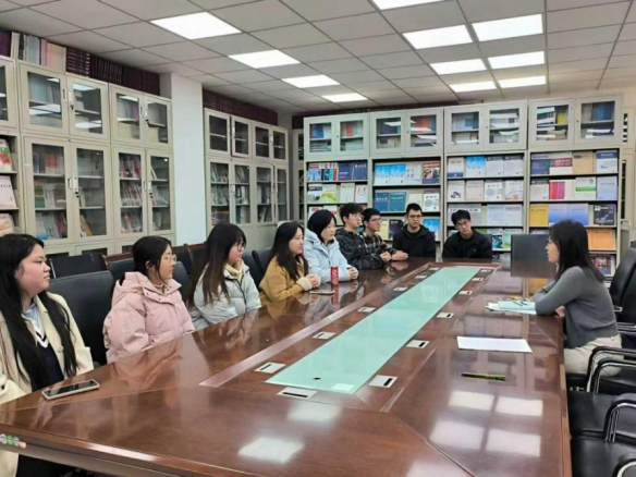 蔡冰冰老师与学生代表座谈交流,通过分享往届考研学生成功案例,鼓励大家增强信心,全力备战考试。