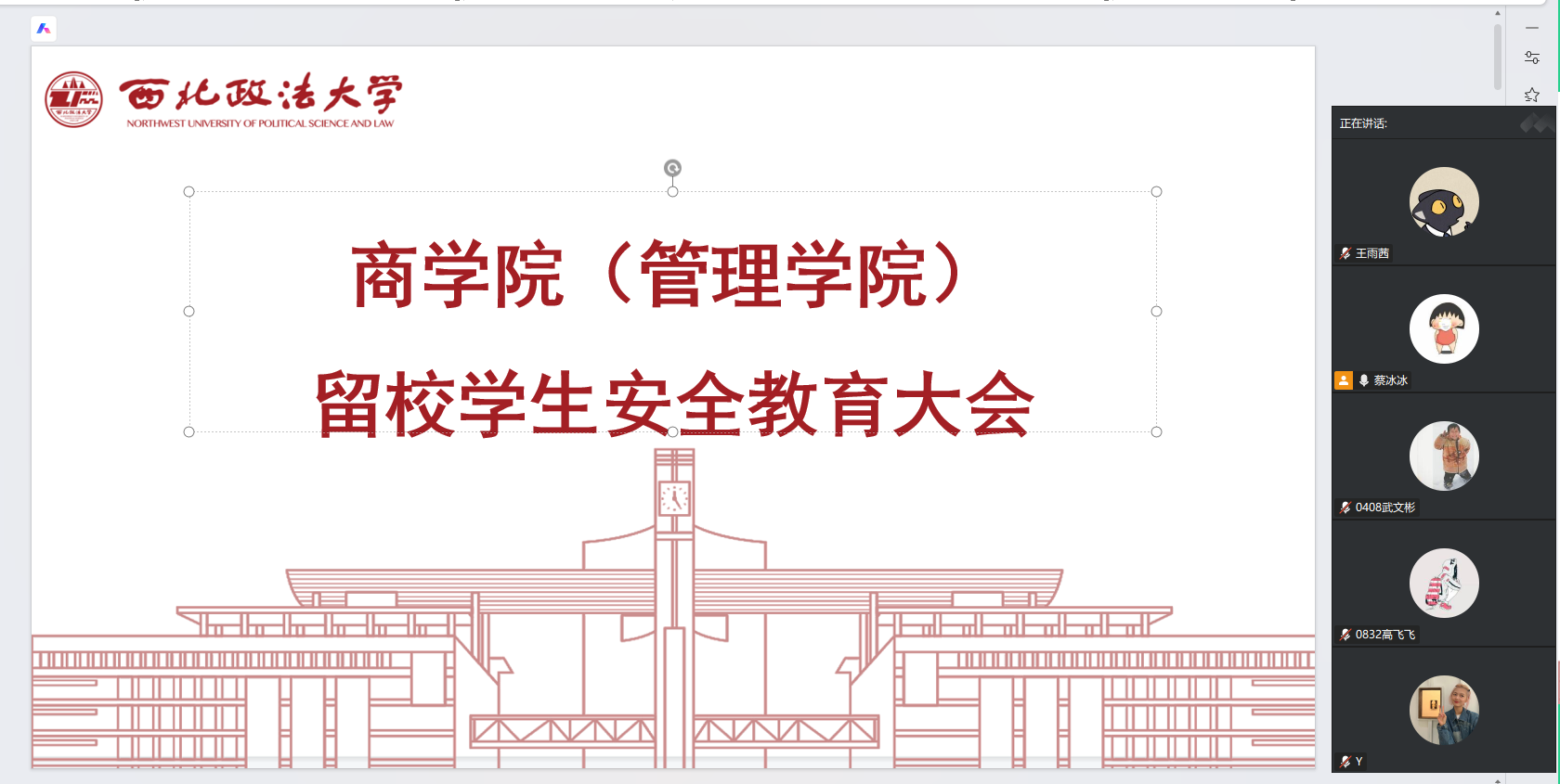 假临近,为切实保障留校实习研究生生命财产安全,全面强化学生安全防范意识与规则意识,1月17日,NBA直播线上看 召开研究生寒假留校安全教育大会。会议由研究生辅导员蔡冰冰主持,全体留校研究生参会。