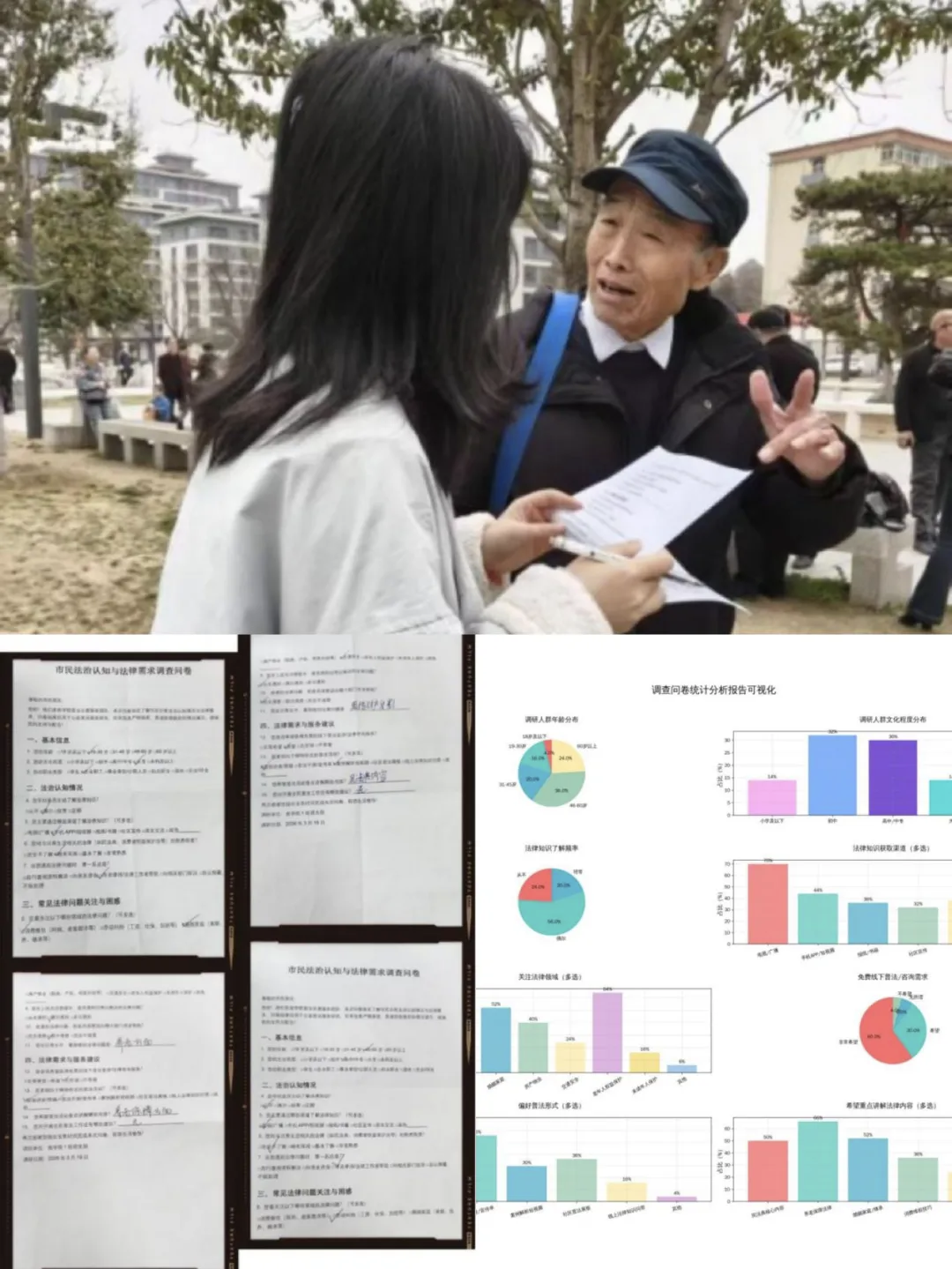 者,治之端也;志愿者,暖之心也。NBA直播线上看 志愿者化身“法治宣传员”,走进长安中央公园开展普法志愿服务活动。13名团员分工协作,以面对面访谈、问卷调查、现场答疑的形式,与市民亲切交流,认真倾听群众的法律困惑,细致讲解与生活息息相关的法律知识。50份有效问卷精准捕捉民生法律需求,一次次耐心解答让法治理念深入人心,商院青年用专业力量为市民撑起“法治保护伞”,让法治阳光照亮群众生活的每一个角落。