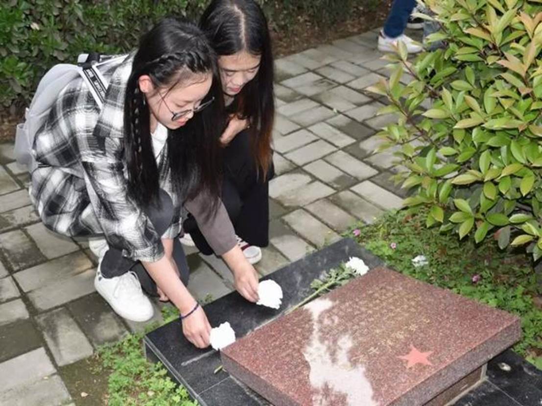 活动第三项:向烈士敬献花朵,行默哀礼。墓园幽静,历史悲壮,支部团员们怀着无比沉重的心情静默悼念,向烈士敬献花束,表达对革命先烈的深切缅怀和无限敬仰:革命先烈永垂不朽!