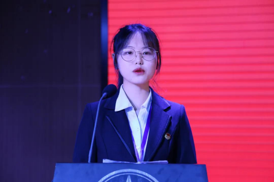 第六届学生会主席陈映彤发表代表上一届学生会进行了工作总结。她在回顾、分享经验的同时提出学生会成员要具备服务意识、奉献精神、集体责任感等,并寄语新一届成员不忘初心,砥砺前行。
