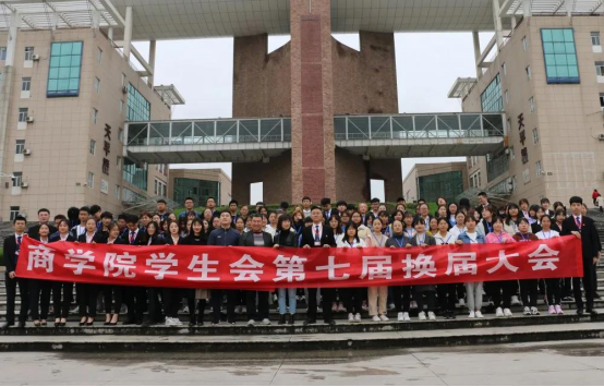第七届学生会换届大会圆满结束,全体与会人员在天平楼前合影留念。