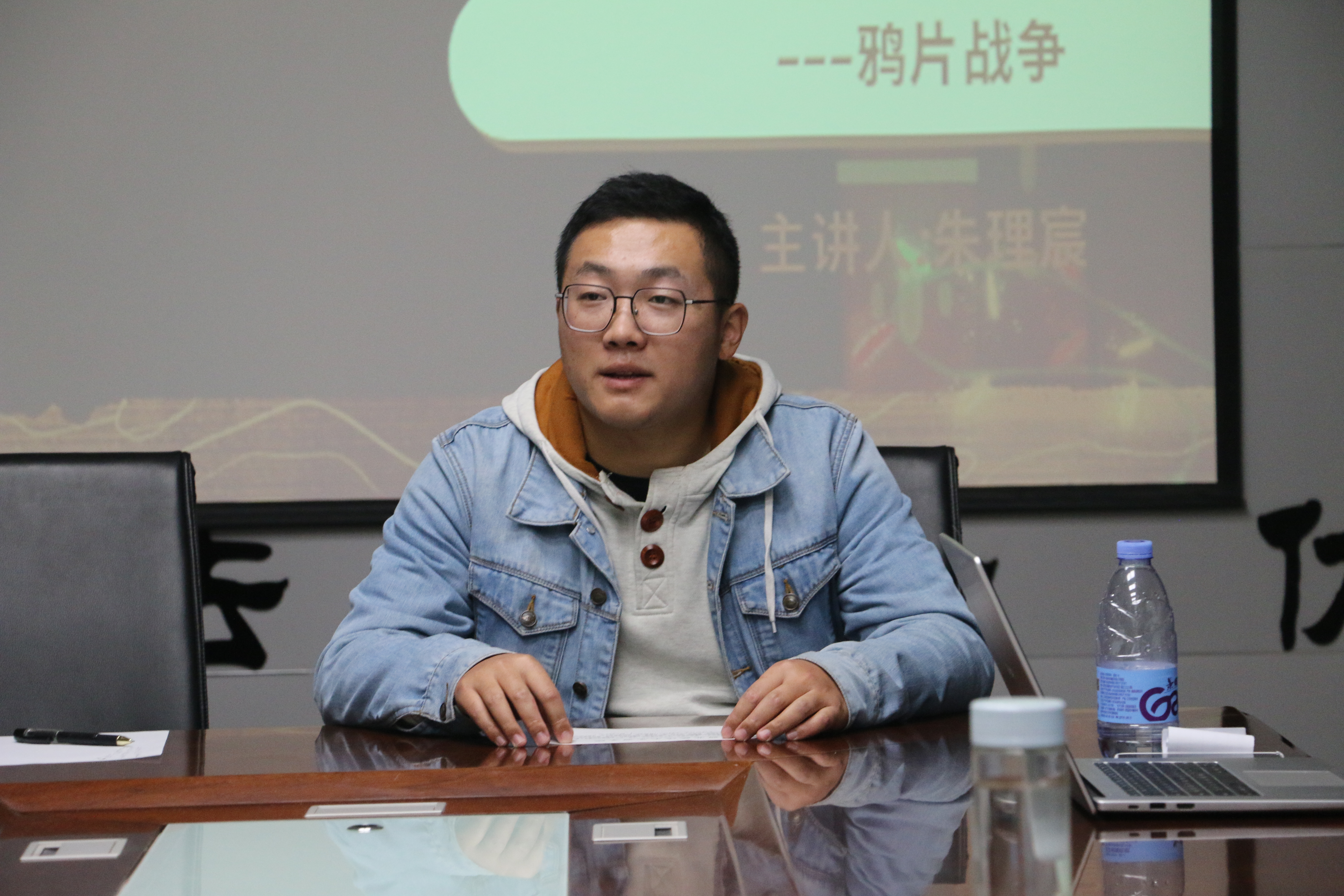 朱理宸同学通过自己阅读的关于鸦片战争书籍,整理分析了鸦片战争的基本情况、战争背景、战争起因、南京条约及其影响等,并向现场同学们提出互动问题,大家踊跃回答,对互动话题展开积极的探讨。同学们通过书籍、视频和资料的分享,畅所欲言,发表了自己对鸦片战争、中国近现代历时发展的变化以及对中华民族伟大复兴中国梦理解,体现了同学们对历史的热情、对当下中国发展的关注。