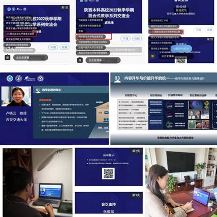 为提升学院教育教学质量,加强教师教学育人能力,认真组织学院教师线上参加了陕西省教育厅举办的陕西本科高校2022年秋季学期混合式教学系列交流会五场,共有120多人次参与。在线与西安电子科技大学、西安交通大学等高校教师进行课程建设、课堂教学模式的相关交流。