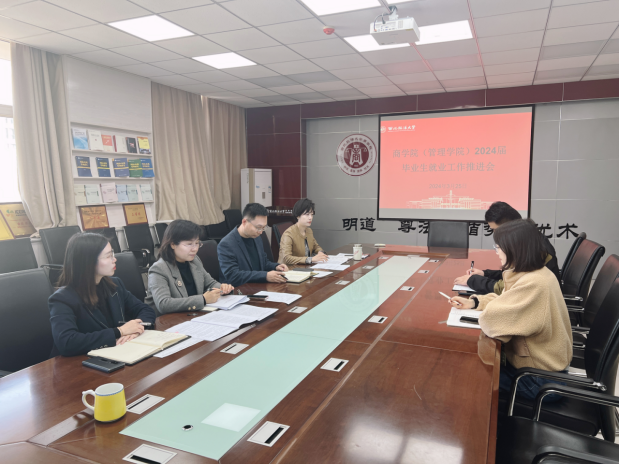 (管理学院)召开2024届毕业生就业工作推进会。会议聚焦2024届毕业生就业工作的重点和难点,进行再动员、再部署。学院班子成员,毕业班辅导员参加,会议由学院党委副书记、副院长蔺媛主持。