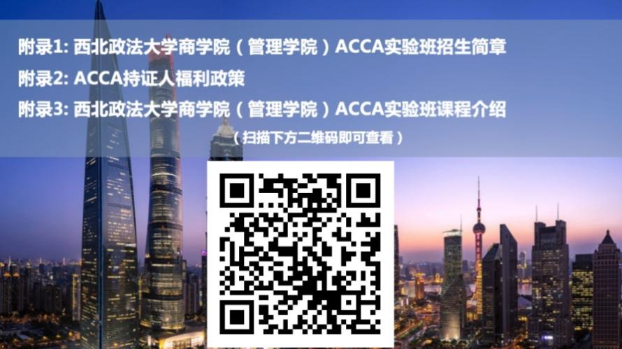 咨询地址:西北政法大学长安校区诚意楼6层ACCA实验班办公室