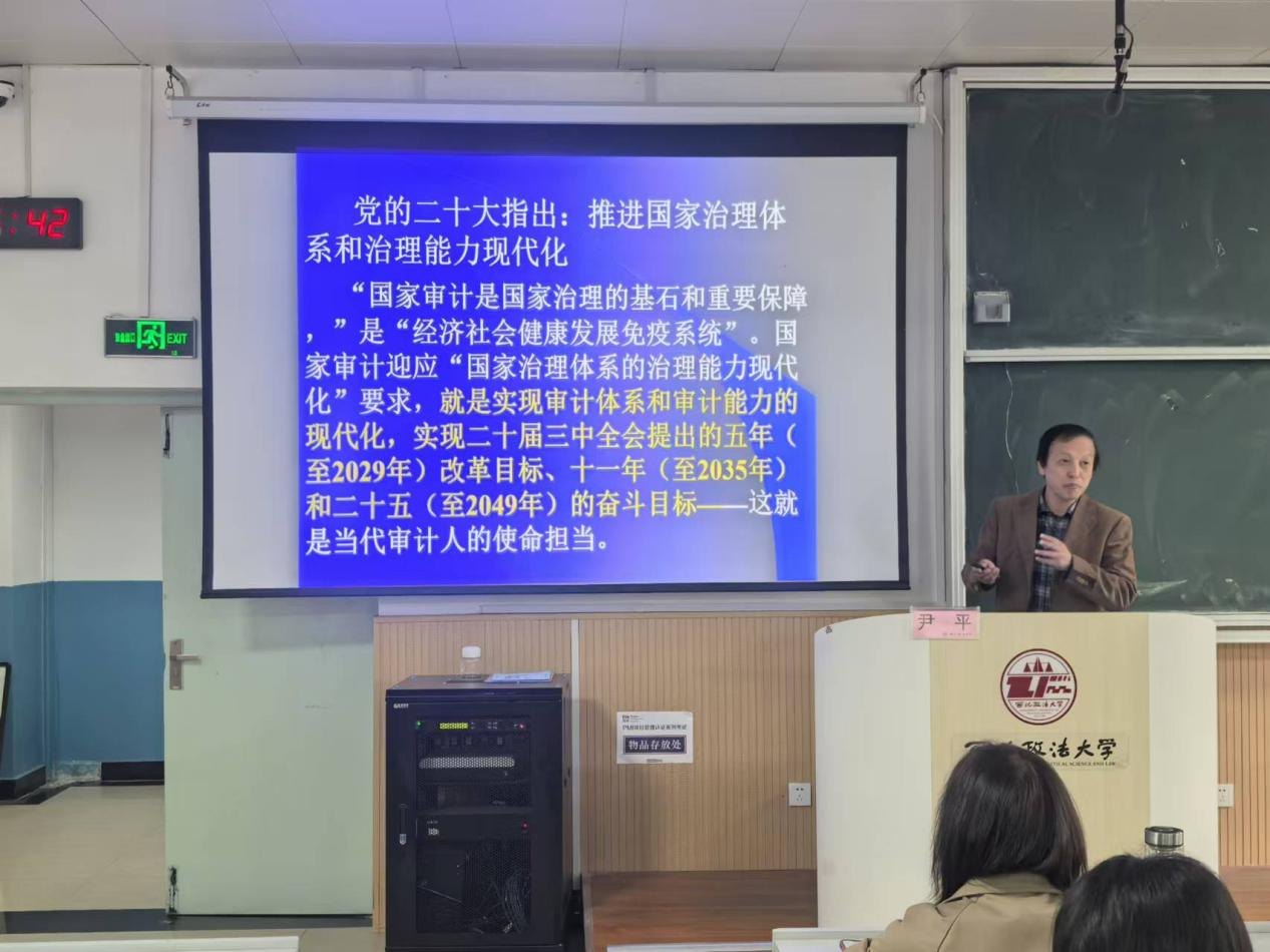 本科生做题为《党领导的红色审计巡礼:历史回顾、经验总结、未来展望》的学术讲座。本次讲座由财务审计系主任李普玲副教授主持,学院百余名师生参加。