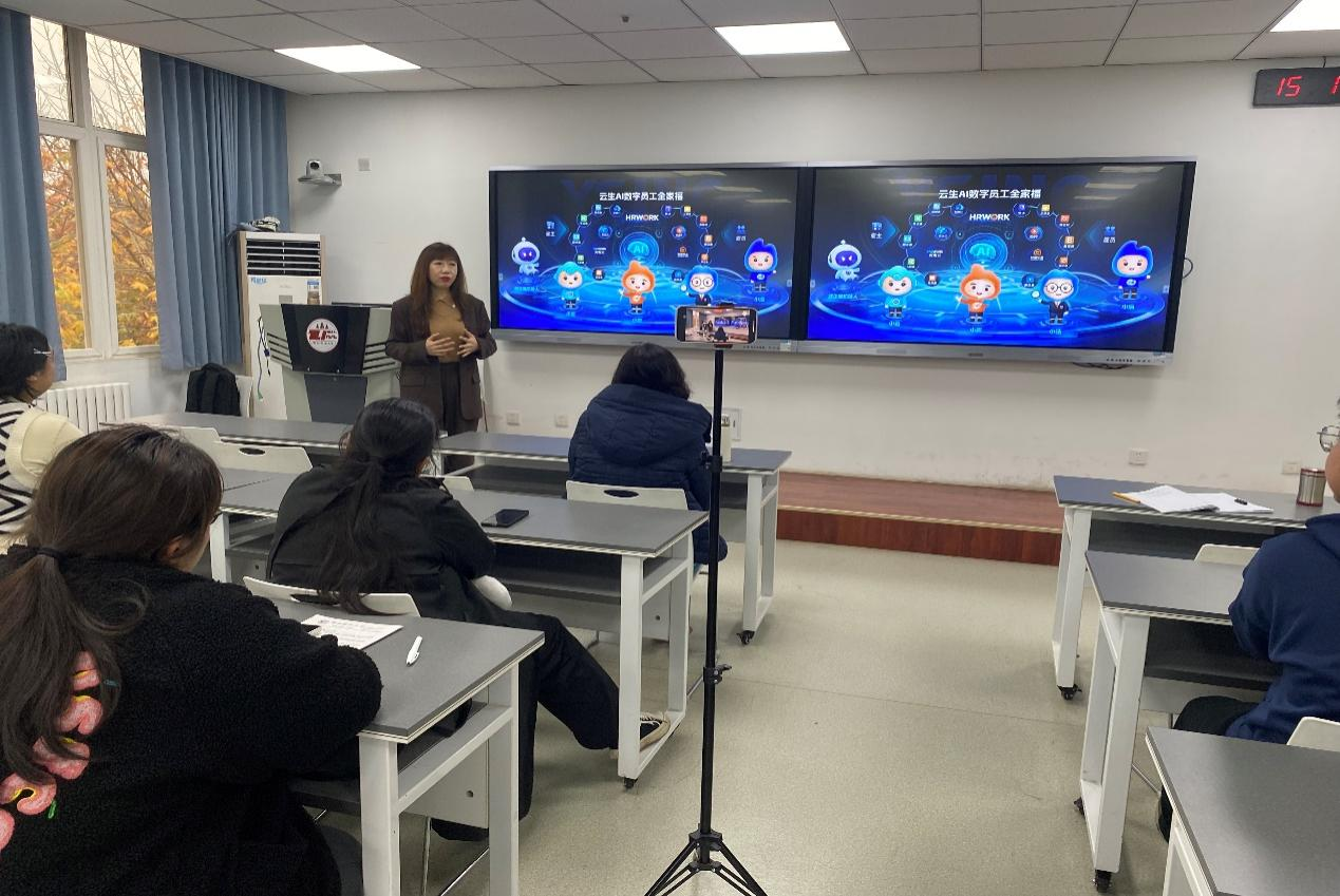 讲座题目为《从市场洞察到专业实践的全景之旅》,讲座分四部分内容。通过市场环境与背景、AI+人力资源的实践与应用、专业的咨询服务、云生集团介绍,让同学们对人力资源管理专业及发展前景有了深入的了解。讲座期间还让同学们尝试通过AI系统来解决企业管理中存在问题,同学们感受到人工智能在工作实践中的应用。讲座结束后,龚霞老师和学生们进行了积极的互动,热心解答了同学们在人力资源管理领域中提出的问题,鼓励同学们认真学习专业知识,多在实践中学习成长。