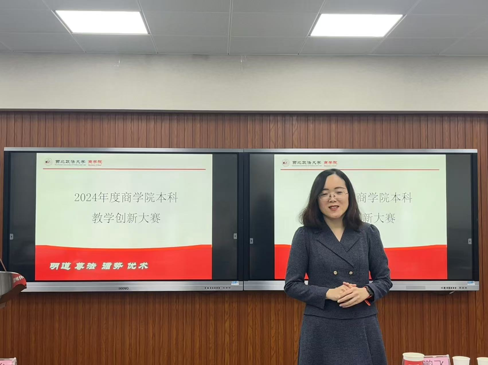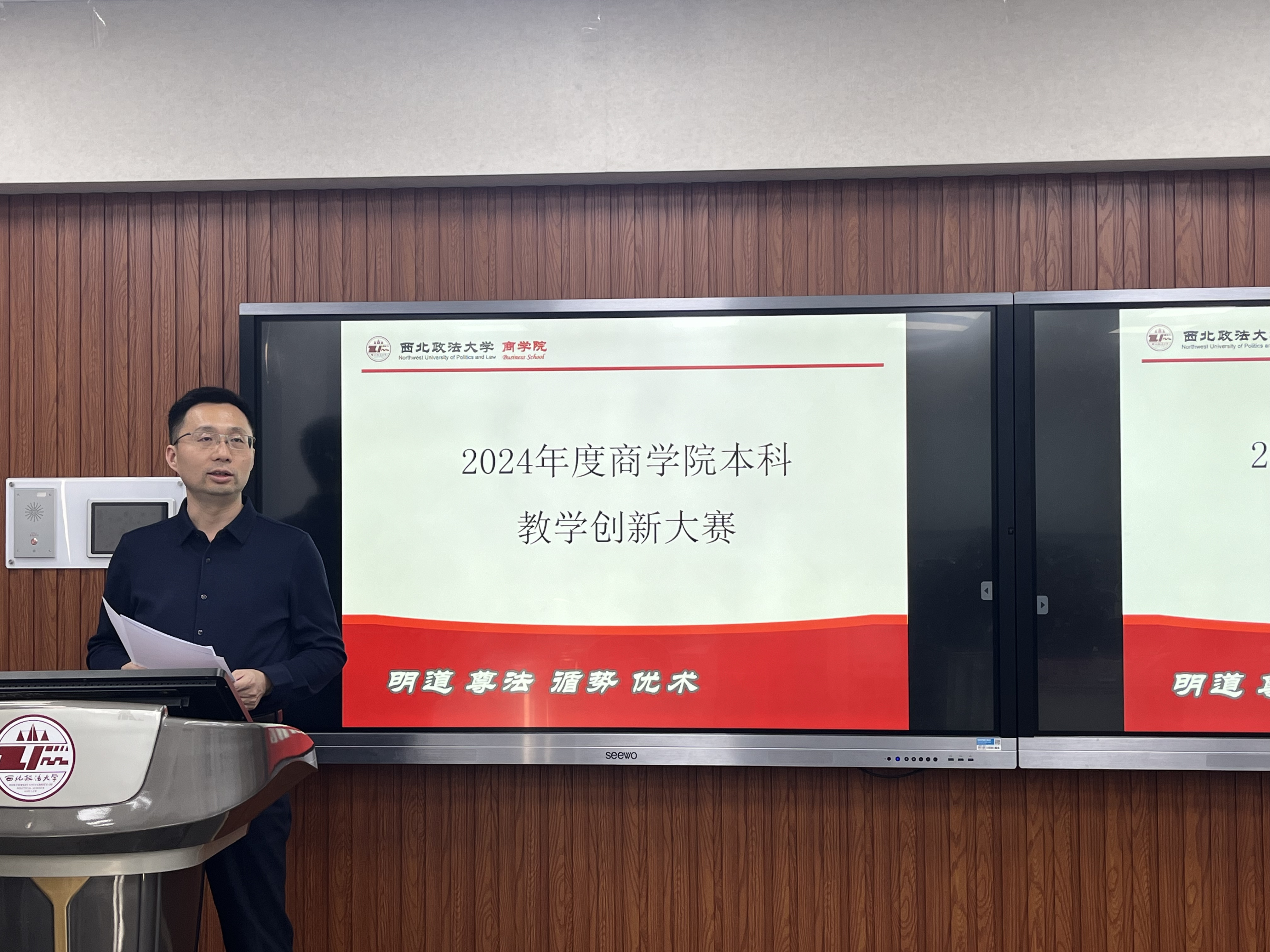 于长安校区5号楼406教室举行2024年教学创新大赛。本次大赛赛由高等教育研究所宋鸿雁教授、教务处副处长王鹏飞副教授、刑事法学院教授步洋洋担任评委,学院党委书记赵参主持。