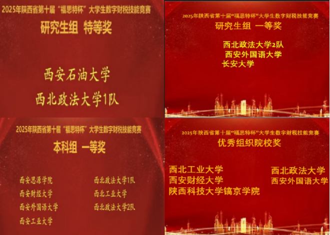 2025年11月8日,由陕西省高等学校教学指导委员会工商管理类工作委员会主办、西北政法大学承办的陕西省第十届“福思特杯”大学生数字财税技能竞赛圆满落幕。本届竞赛吸引了来自全省36所高校的51支队伍同台竞技。经过激烈角逐,NBA直播线上看 代表队凭借扎实的专业功底和出色的团队协作能力,斩获研究生组特等奖1项、研究生组一等奖1项、本科组一等奖2项,我校同时荣获“优秀组织院校奖”。