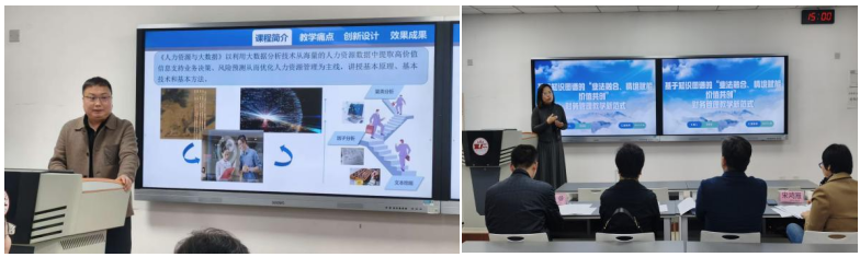 本次赛事设置了新文科、课程思政和基础课程三个参赛类别。比赛中,10名参赛教师凭借别出心裁的教学设计、丰富多样的教学方法以及生动精彩的讲解,充分展示了新时代教师过硬的教学功底。三位评委老师一一对参赛教师们进行了细致点评,并从课程目标、教学定位、教学设计、比赛准备等多个方面提出了宝贵的意见和建议。