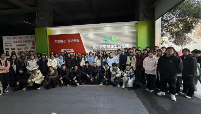 随后,师生团队参观了区内重点企业——爱菊集团。作为一家拥有近百年历史的民生保障企业,爱菊集团完成了从传统粮油店到现代化跨国粮企的转型升级。在企业历史文化展厅,师生通过图文与实物陈列,了解其自20世纪30年代创立以来坚守“为百姓谋粮安”的初心,逐步发展成为集种植、加工、仓储、贸易于一体的综合性跨域粮油食品集团的历程。