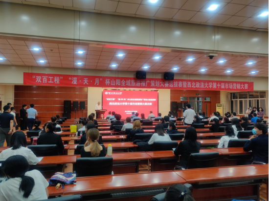 “双百工程”“漫·天·月”杯山阳全域旅游推广策划大赛选拔赛暨西北政法大学第十届市场营销大赛是我校贯彻落实省委教育工委“双百工程”对口帮扶山阳县的专业赛事。赛事从3月份开展以来,线上宣传推广成果显著,赛事吸引校内外280余万人关注,为我校扶贫工作的成果转化起到了积极的作用,社会反响良好。