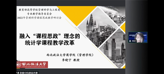 本次研讨会共邀请了包括来自复旦大学、上海对外经贸大学、合肥工业大学等高校的5名优秀教师进行主题报告,线上累计参会人数超过4300余人。李晓宁教授利用案例结合统计学特点进行课程思政教学的主题汇报,受到研讨会专家学者的一致好评。
