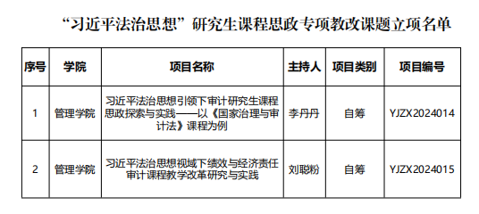 近日,研究生院组织开展了2024年“习近平法治思想”研究生课程思政专项教改课题,经个人申报、形式审查、专家评审、公示等环节,最终NBA直播高清免费观看 2项成果获批立项。立项名单如下: